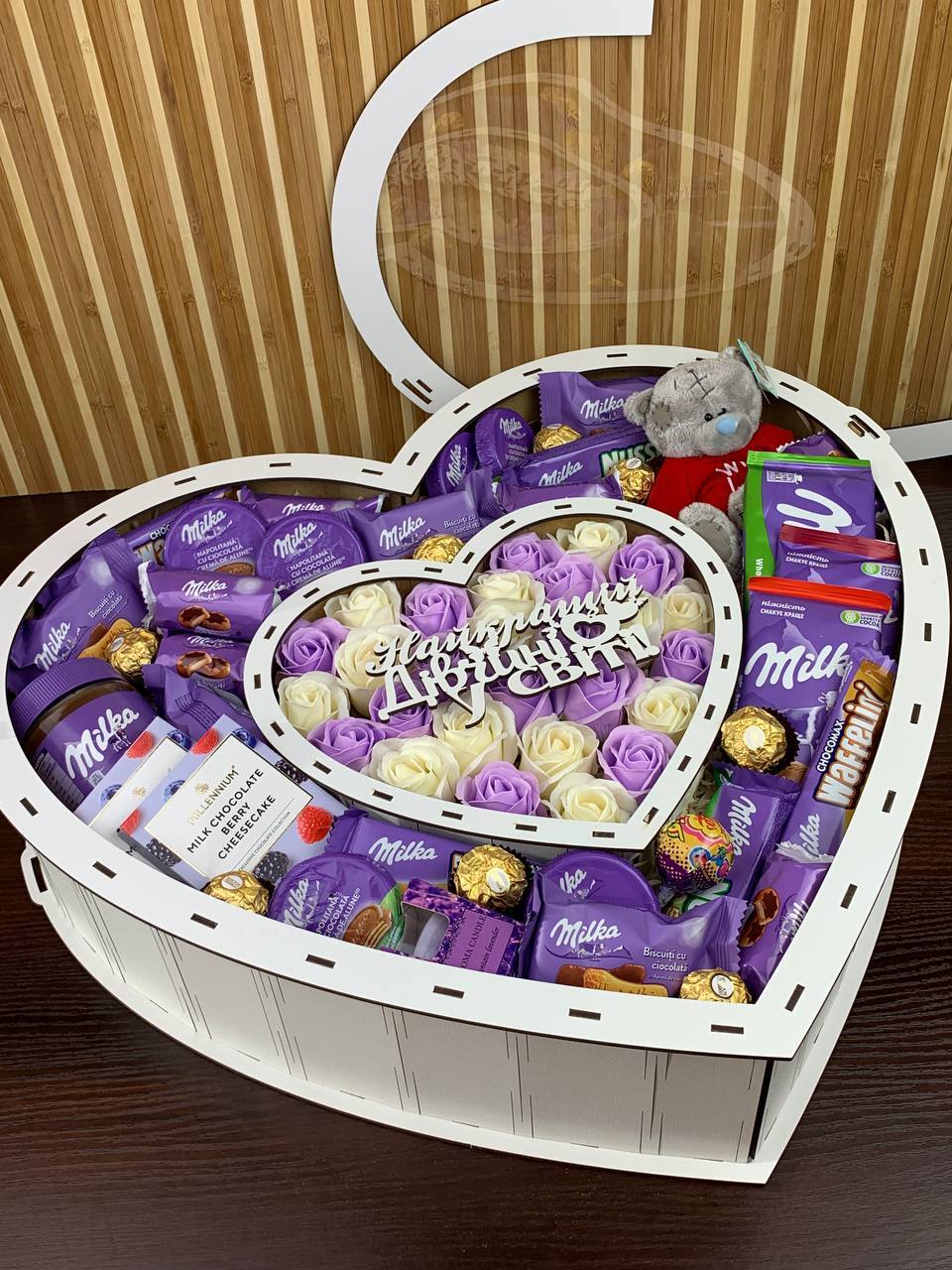 - можна поставити в будь який бокс між солодощами або окремо в прозорій коробочці